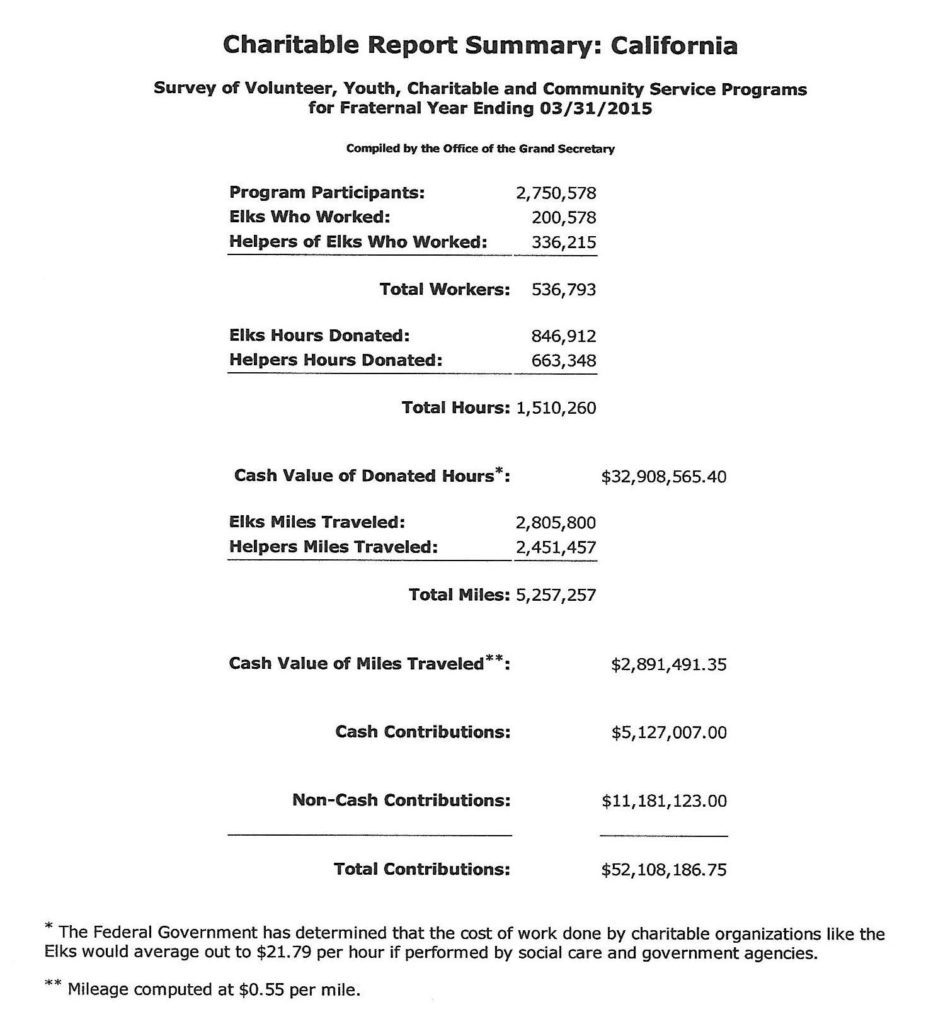 2015 Elks Charitable Summary Report for California-Hawaii California-Hawaii Elks Association Posted on July 10, 2015 by CharisceAugust 15, 2023