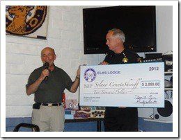 The Gratitude Grant award was presented to Sheriff Gary Stanton, and members of the Solano County Sheriff’s department, Under Sheriff Tom Ferrar, Deputy Mark Demarest, Deputy John Swafford and his K-9 partner, Basco at the lodge’s Friday night dinner which was attended by 60 Elks and guests. Sheriff Stanton presented the Lodge with a framed certificate of appreciation for the Elks donation.