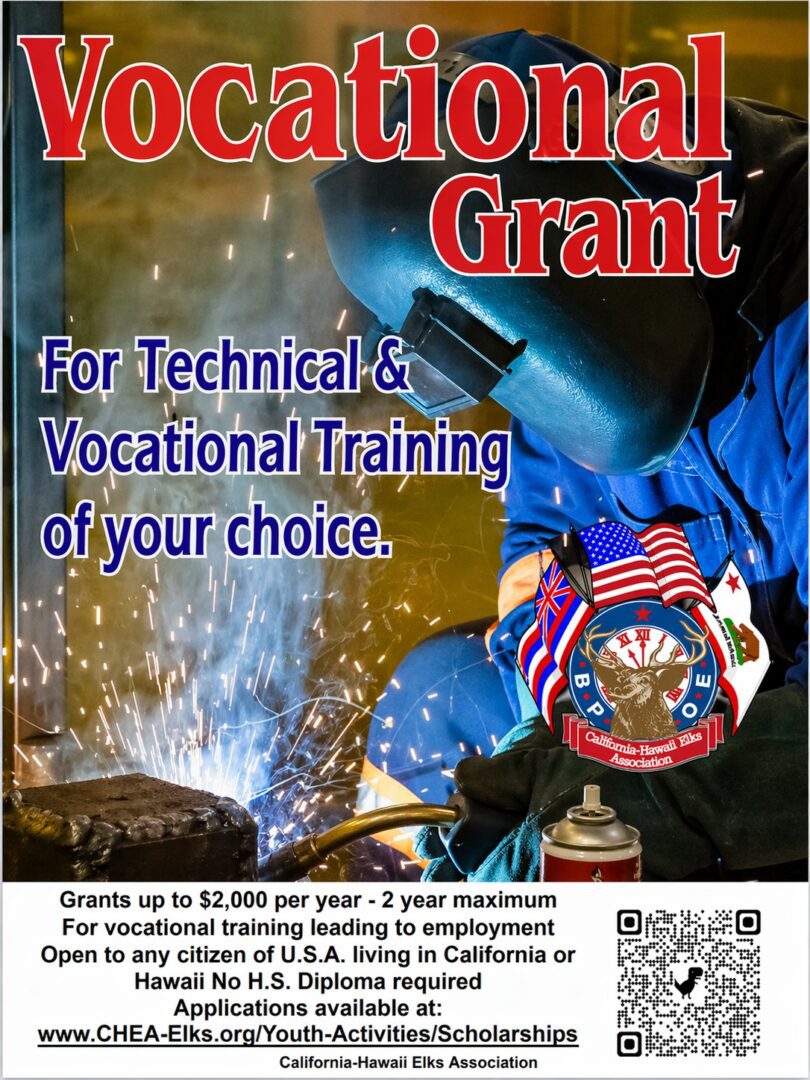 Two Scholarships are available from Elks National Foundation and the California-Hawaii Elks Association:
